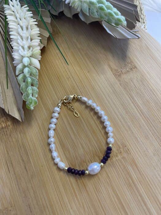 צמיד פנינים ואבני חן אמטיסט
