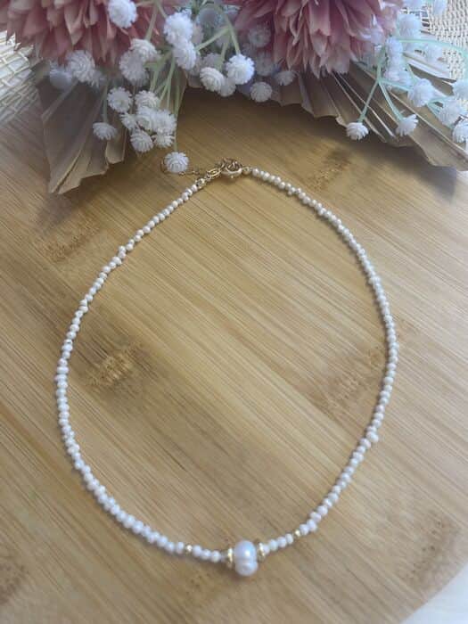 שרשרת פנינים טבעיות קטנות בגוון לבן ופנינה מרכזית