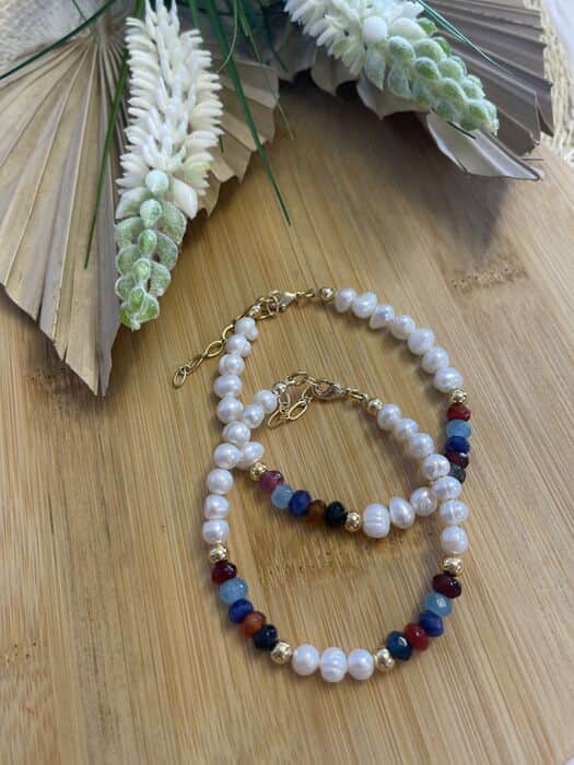 צמיד פנינים ואבן חן אגת צבעוני גדול