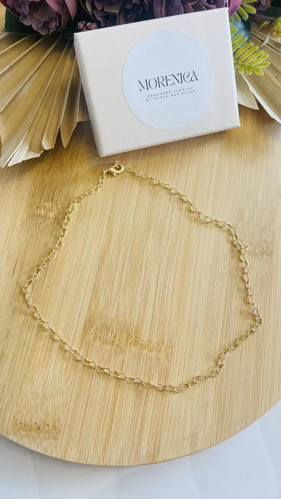 שרשרת חוליות לב עדינה ציפוי זהב 24K
