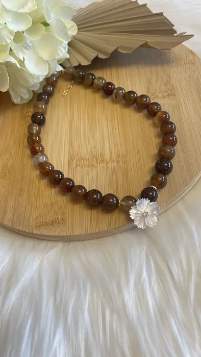 חומר התכשיט : אבני חן אגת מדגסקר,פרח צדף עם זרקון, ציפוי זהב 24k