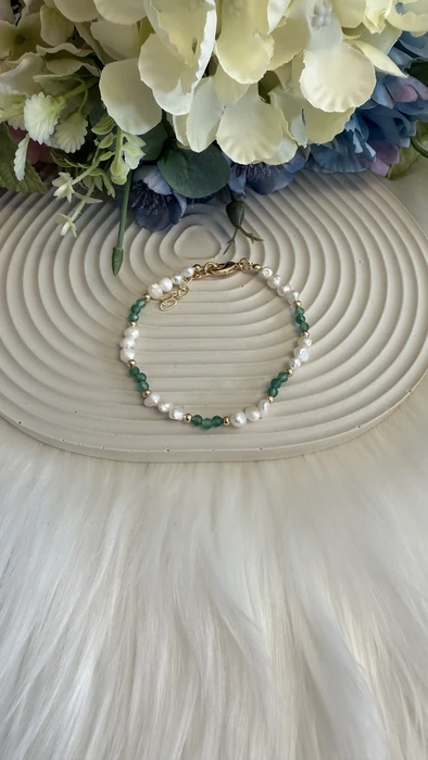 צמיד פנינים טבעיות לבנות בשילוב אבני חן אמרלד