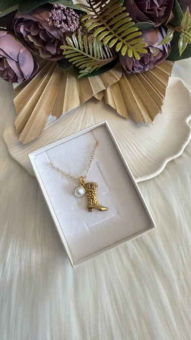 שרשרת ציפוי זהב 24K עם תליון מגף שעשוי ציפוי זהב 24K
