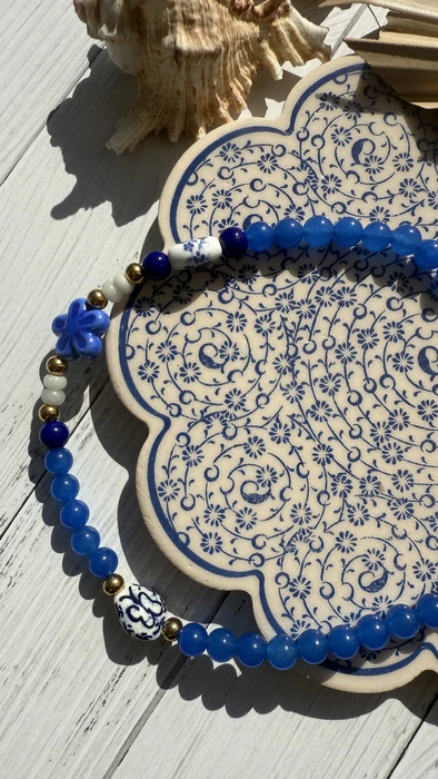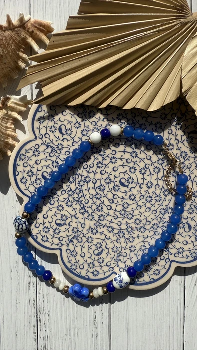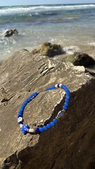 אבן חן אגת בצבע כחול עם אלמנטים של קיץ ויוון