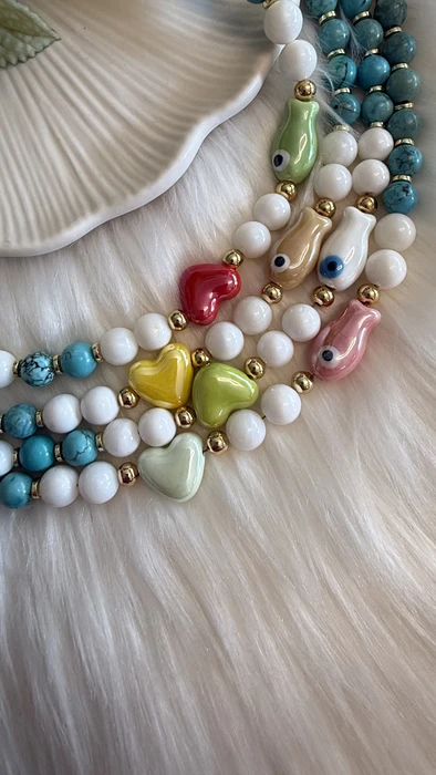 חומר התכשיט : אבני חן ג'ייד,אבני חן טורקיז,, ציפוי זהב 24k,חרוזי זכוכית וקרמיקה בעבודת יד,stainless steel