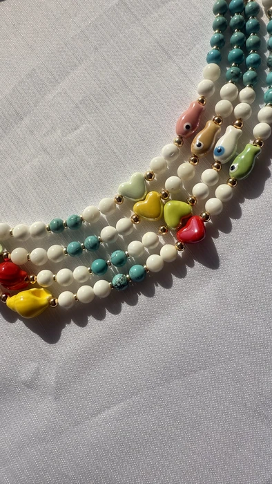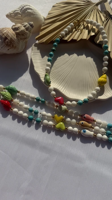 *האלמנטים הצבעוניים משתנים משרשרת לשרשרת כולן בגווני קיץ משגעים (לא ניתן לבחור את שלושת החרוזים הצבעוניים)