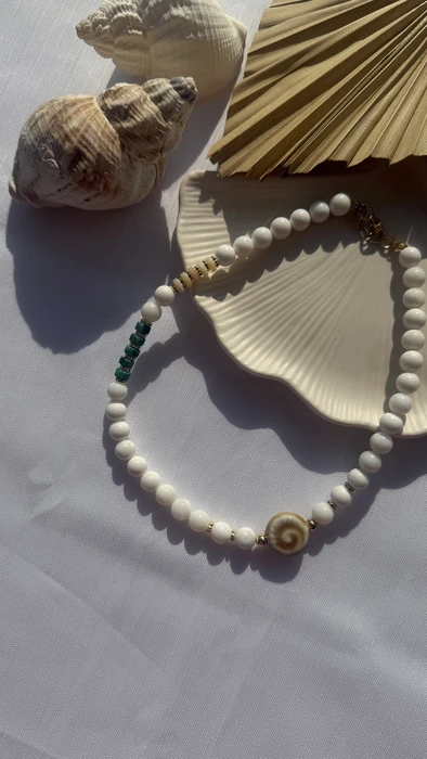 חומר התכשיט : אבני חן ג'ייד,אבני חן טורקיז,אבני צדף, ציפוי זהב 24k,חרוזי זכוכית וקרמיקה בעבודת יד,stainless steel