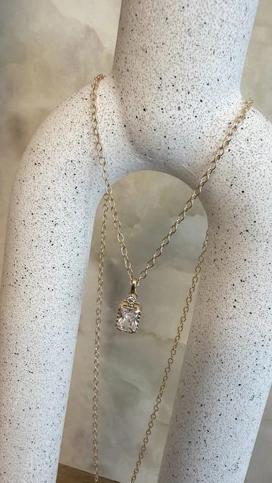 שרשרת תליון מלבן משובץ זרקון וזרקון קטן מעל