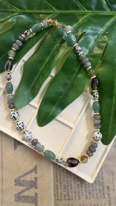 חומר התכשיט : אבני חן ג'ספר דלמטי,אוונטורין,ג'ייד,אגת,סמוקי קוורץ, ציפוי זהב 24,stainless steel