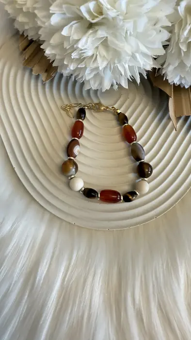 צמיד אדמת הסתיו - אבני חן אגת,קרנליאן,ג'ייד,עין הנמר,קורל השנהב