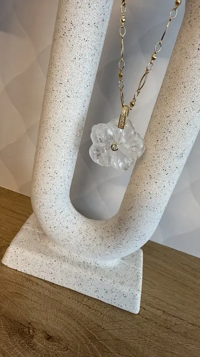 שרשרת תליון פרח אבן חן קוורץ שקוף בשיבוץ זרקונים
