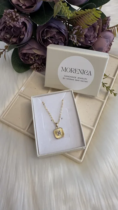 שרשרת תליון ריבוע פסים בשיבוץ אבן זרקון לבן