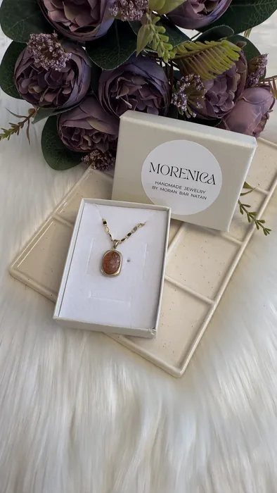 שרשרת תליון מלבן מעוגל אבן חן סאנסטון