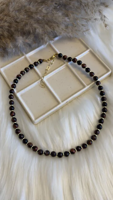 שרשרת טליה - אבן חן עין הנמר בגוון אדמדם