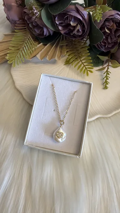שרשרת ציפוי זהב 24K עם תליון פנינה טבעית בשיבוץ לב זרקונים