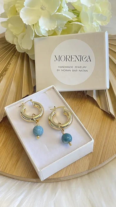 עגילי חישוק בילי בשילוב אבן חן ג'ייד ג'ינס