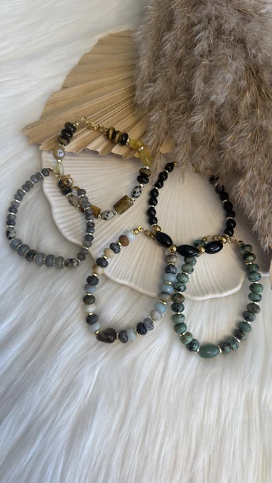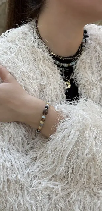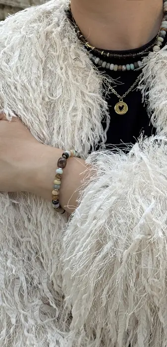 צמיד בין העצים - אבני חן אמזונייט וסמוקי קוורץ