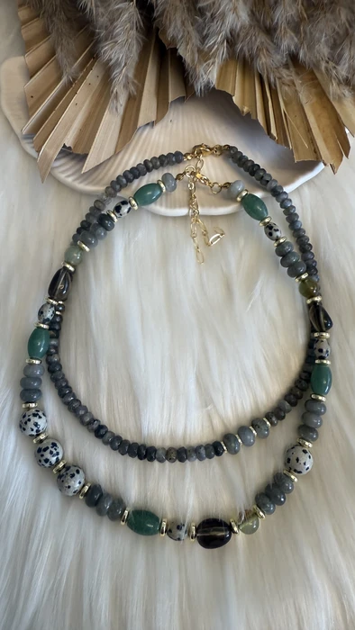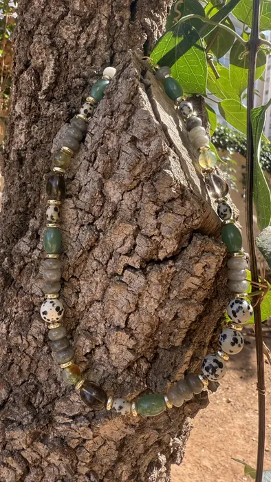 שרשרת במראה הרמוניה בשילוב מגוון אבני חן שנותנת תחושה של חום, אנרגיה ונשיות