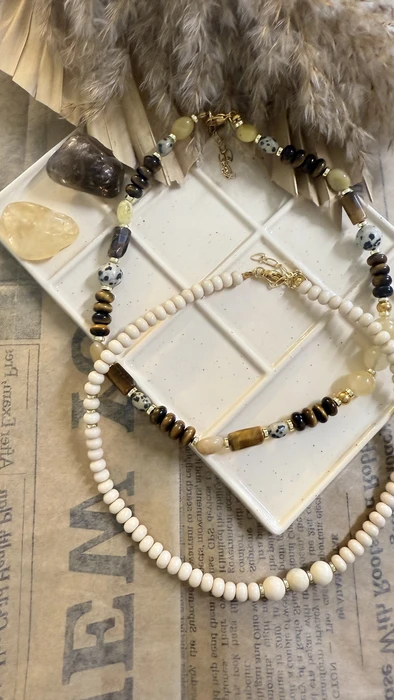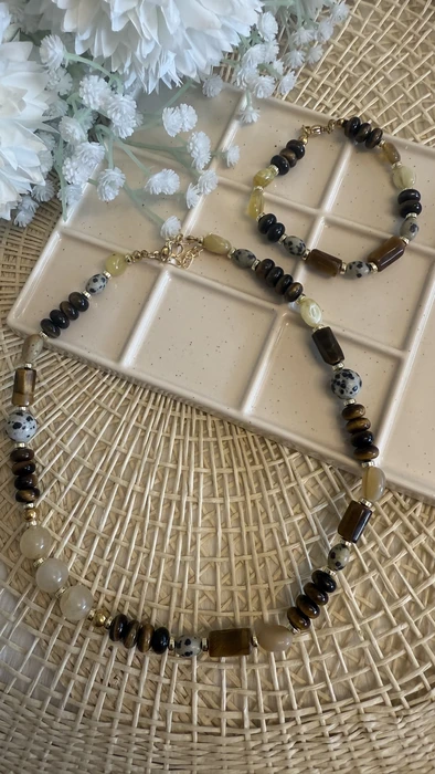 שרשרת במראה הרמוניה בשילוב מגוון אבני חן שנותנת תחושה של חום, אנרגיה ונשיות