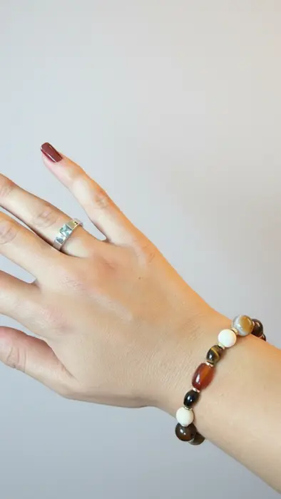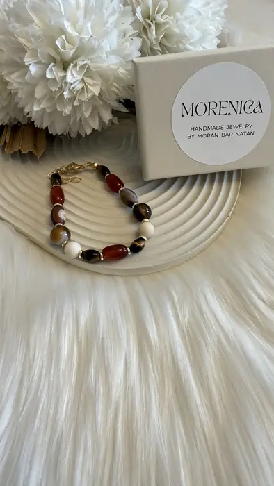 צמיד אדמת הסתיו - אבני חן אגת,קרנליאן,ג'ייד,עין הנמר,קורל השנהב